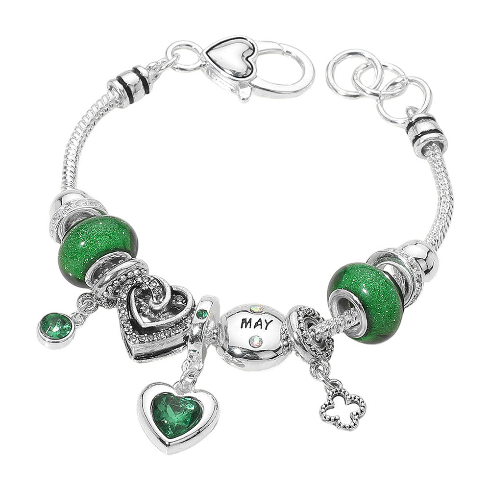 iLLASPARKZ May - Birthstone Heart Charm Multi Beaded Bracelet