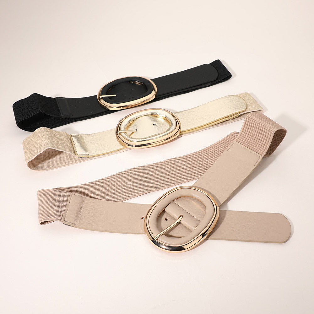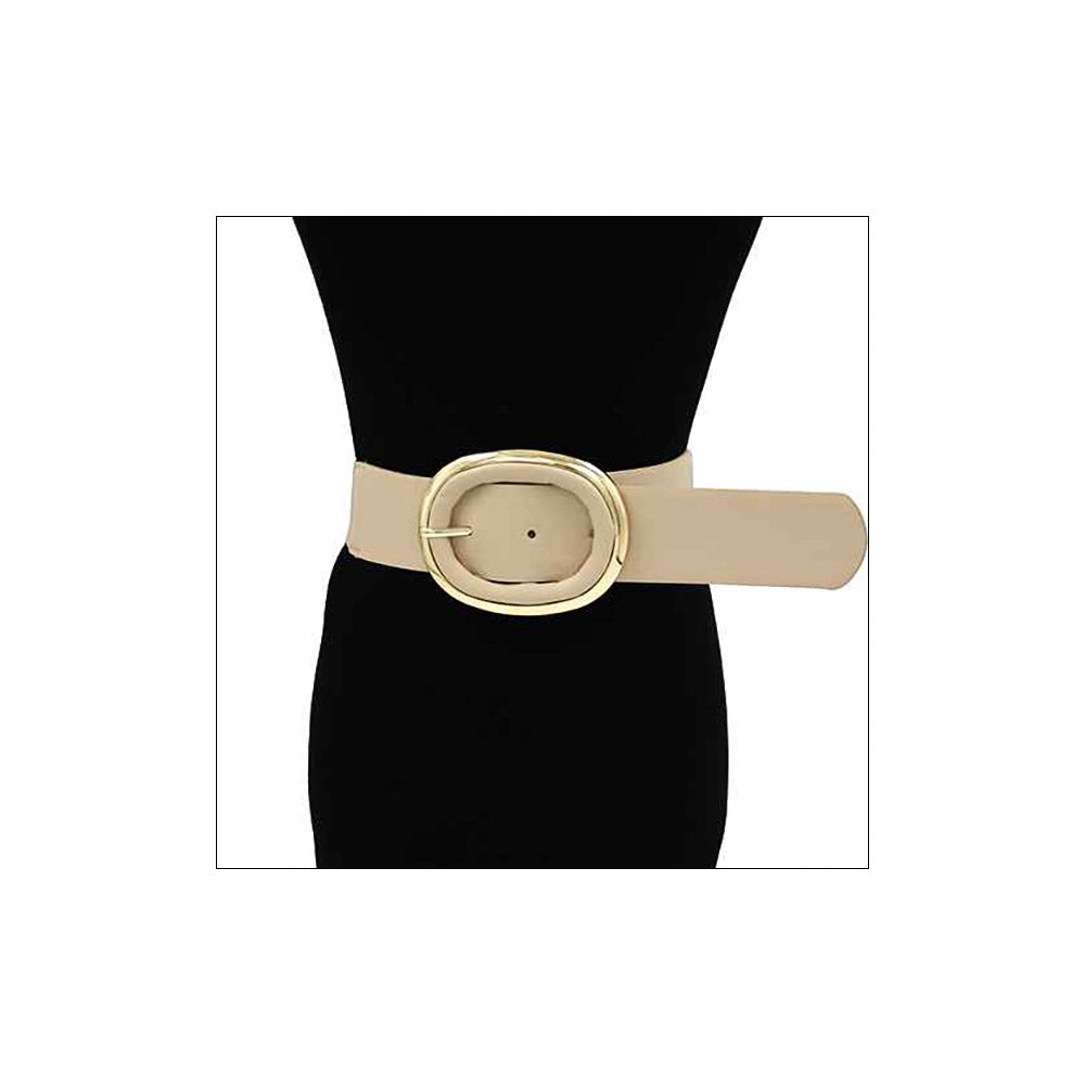 iLLASPARKZ Metal Faux Leather Oval Buckle Accented Wide Elastic Waist Belt