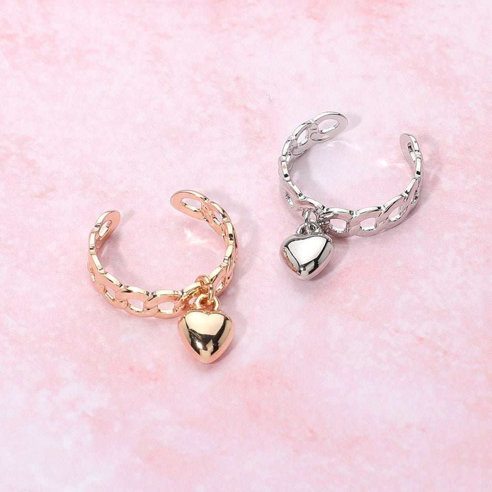 iLLASPARKZ Metal Heart Charm Dangle Adjustable Ring