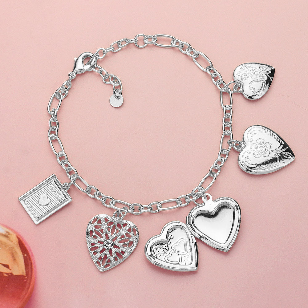 iLLASPARKZ Metal Heart Locket Charm Station Paperclip Chain Bracelet