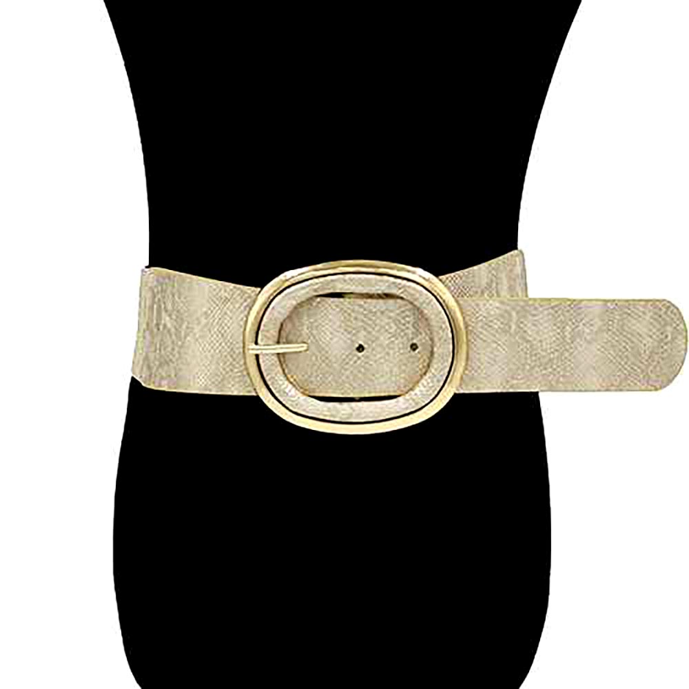 iLLASPARKZ Metal Oval Buckle Accent Wide Snake Print Elastic Waist Belt