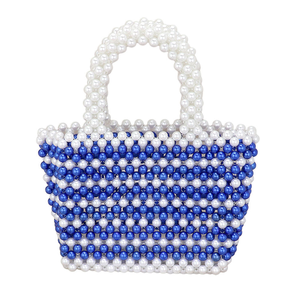 This mini handbag features a refined beaded exterior with a structured silhouette and curved top handles. Ideal for evening events or statement accessorizing, it brings a bold yet elegant flair to any outfit.