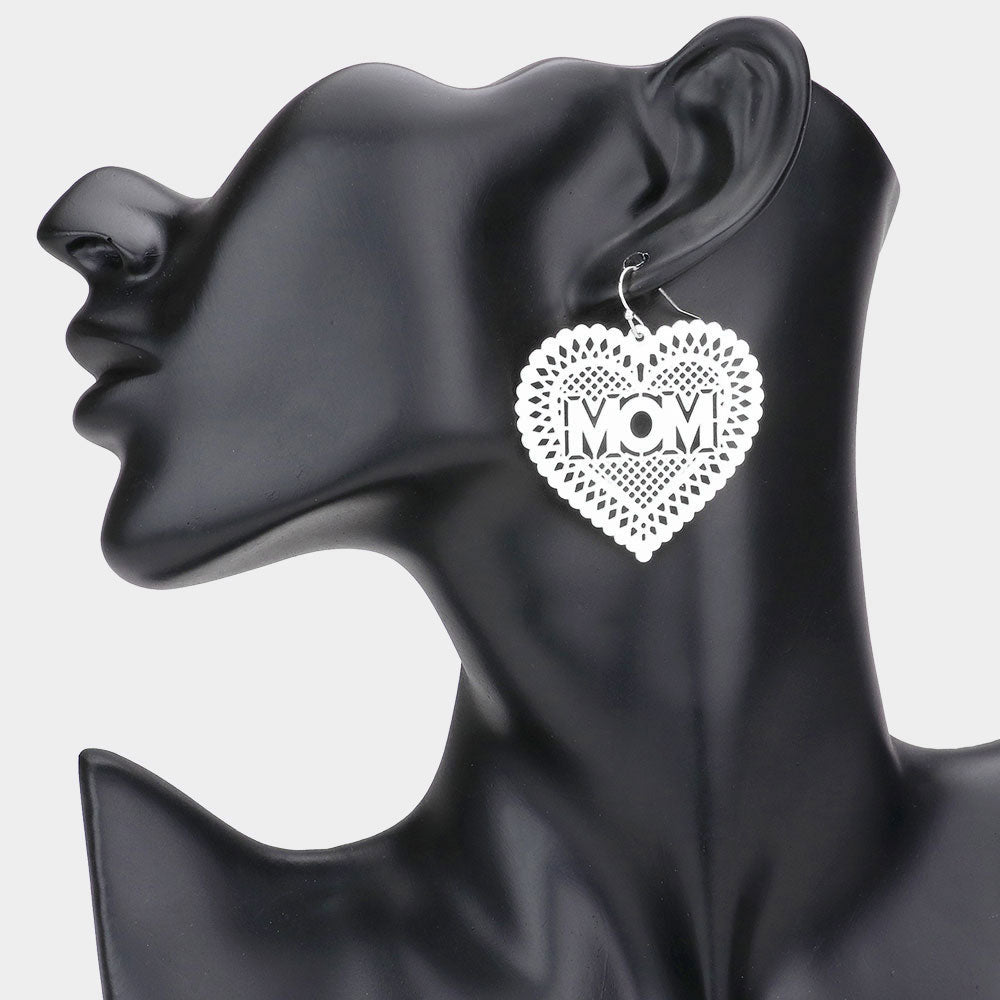 iLLASPARKZ MOM Message Brass Metal Heart Dangle Earrings