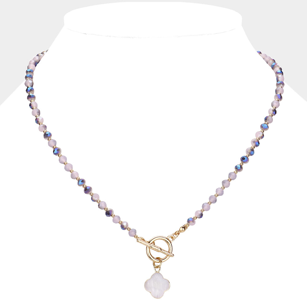iLLASPARKZ Mother Of Pearl Quatrefoil Toggle Pendant Faceted Beaded Necklace