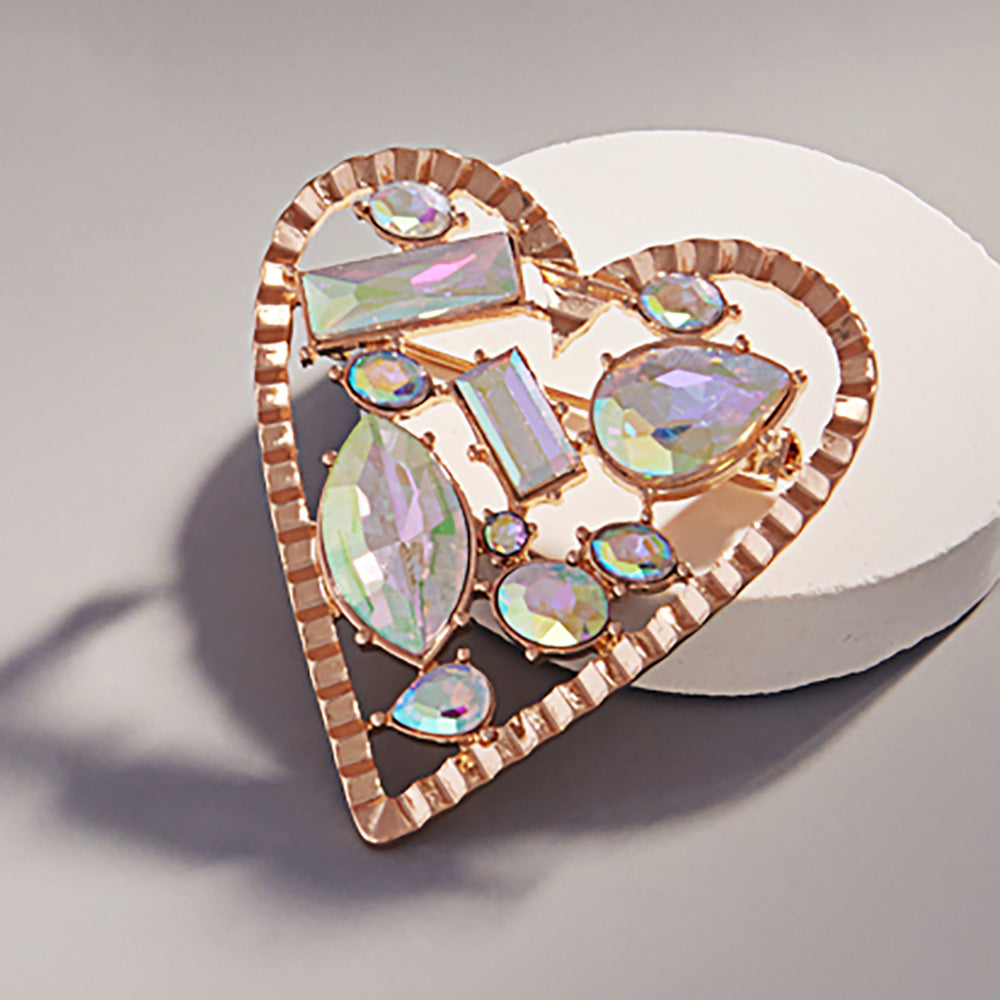 iLLASPARKZ Multi Stone Embellished Heart Pin Brooch