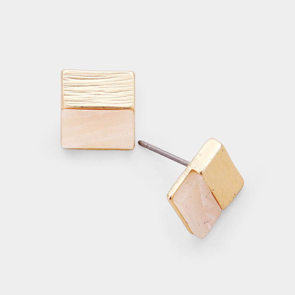 iLLASPARKZ Natural Stone Accented Square Stud Earrings