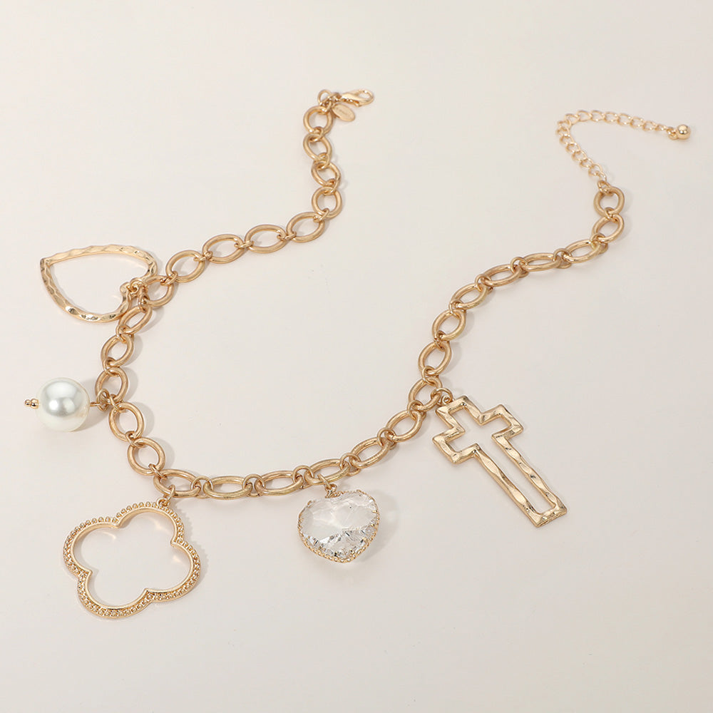 iLLASPARKZ Open Quatrefoil Heart Cross Pearl Charm Station Necklace
