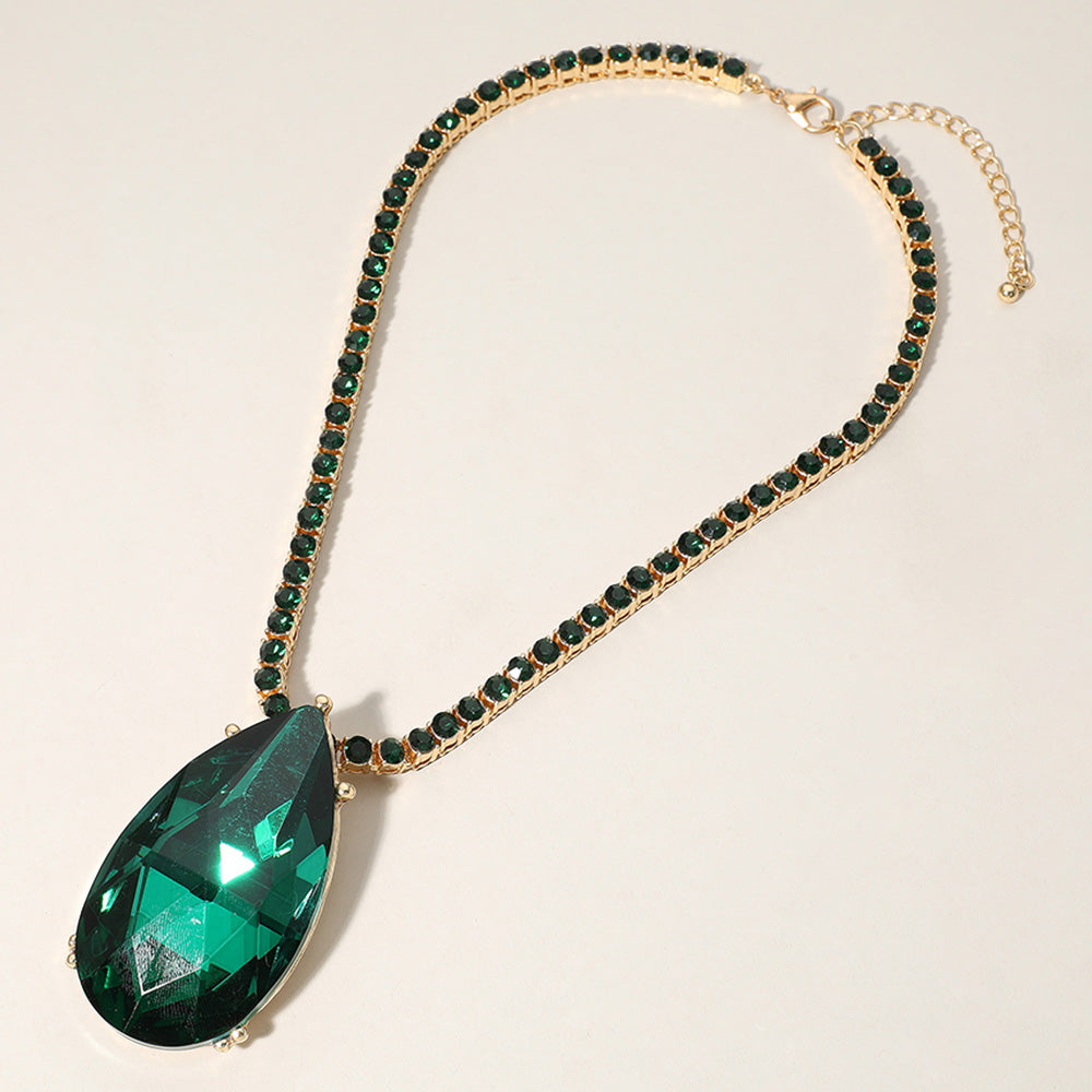 iLLASPARKZ Oversized Teardrop Glass Stone Pendant Bling Studded Chunky Chain Necklace