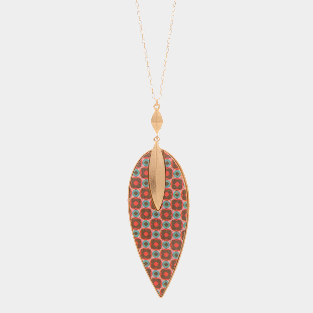 iLLASPARKZ Patterned Wood Petal Pendant Long Necklace