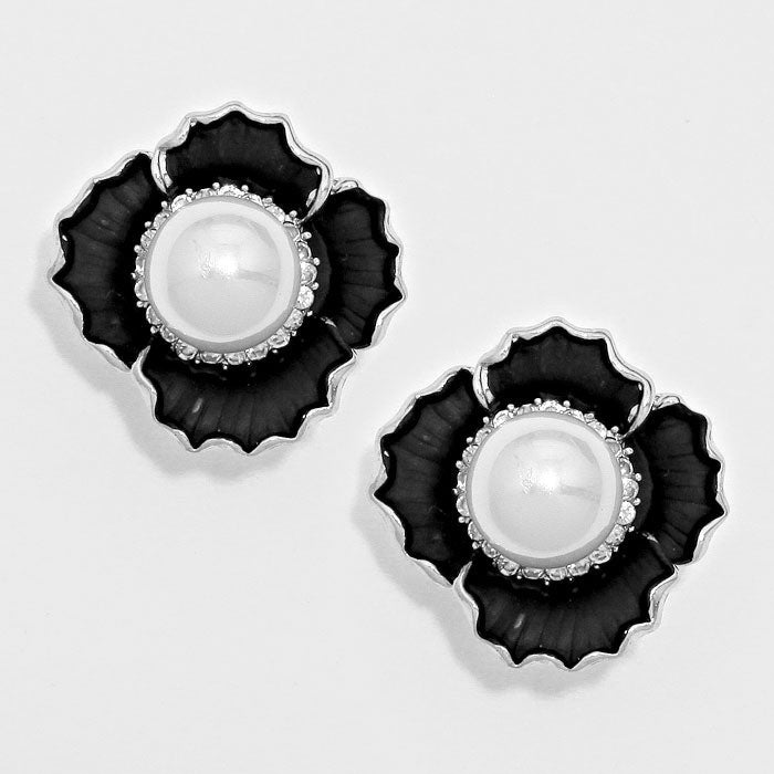 iLLASPARKZ Pearl Accented Flower Clip on Earrings