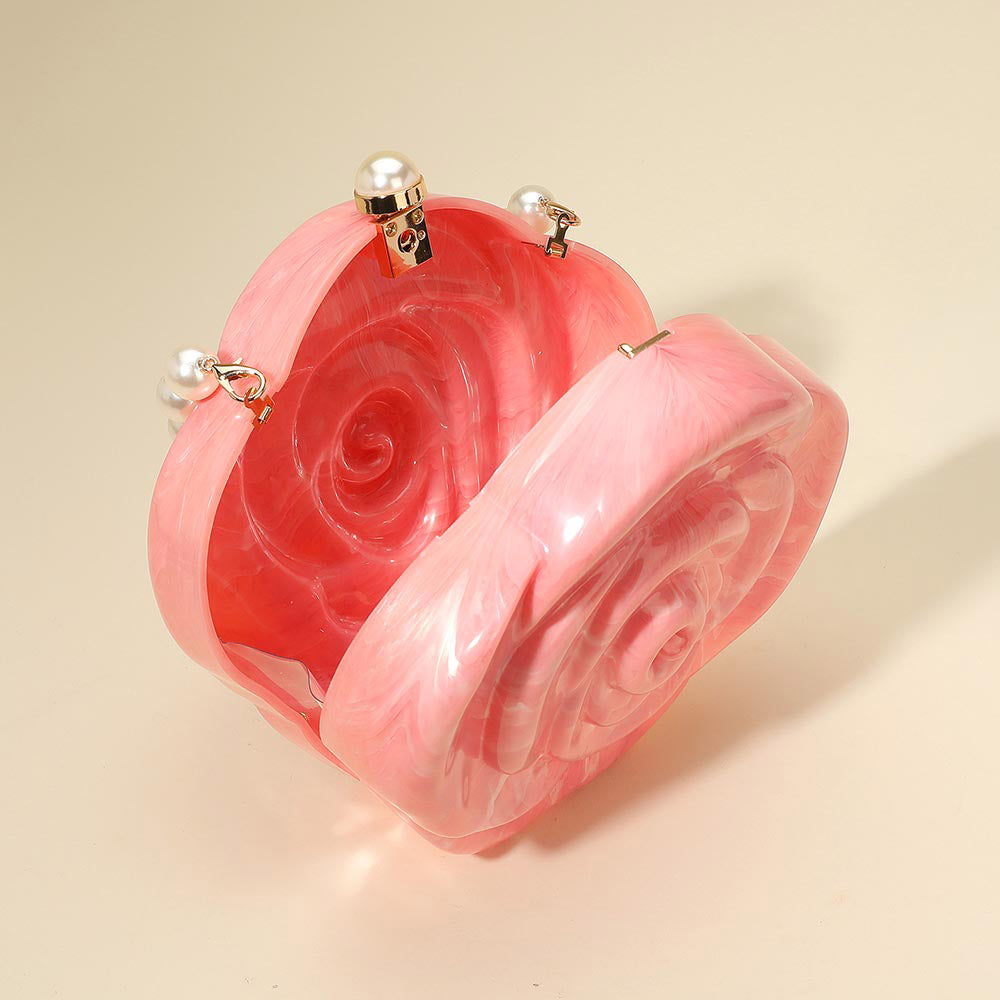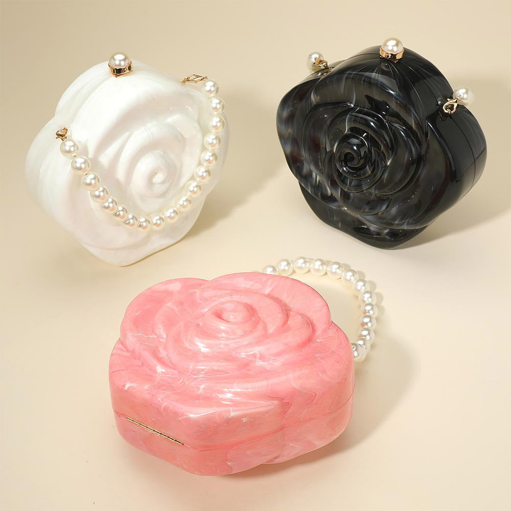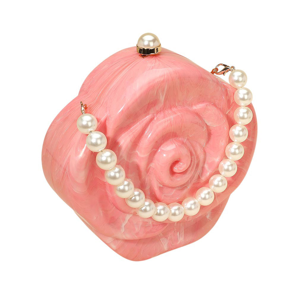 iLLASPARKZ Pearl Beaded Handle Rose Clutch Bag / Crossbody Bag