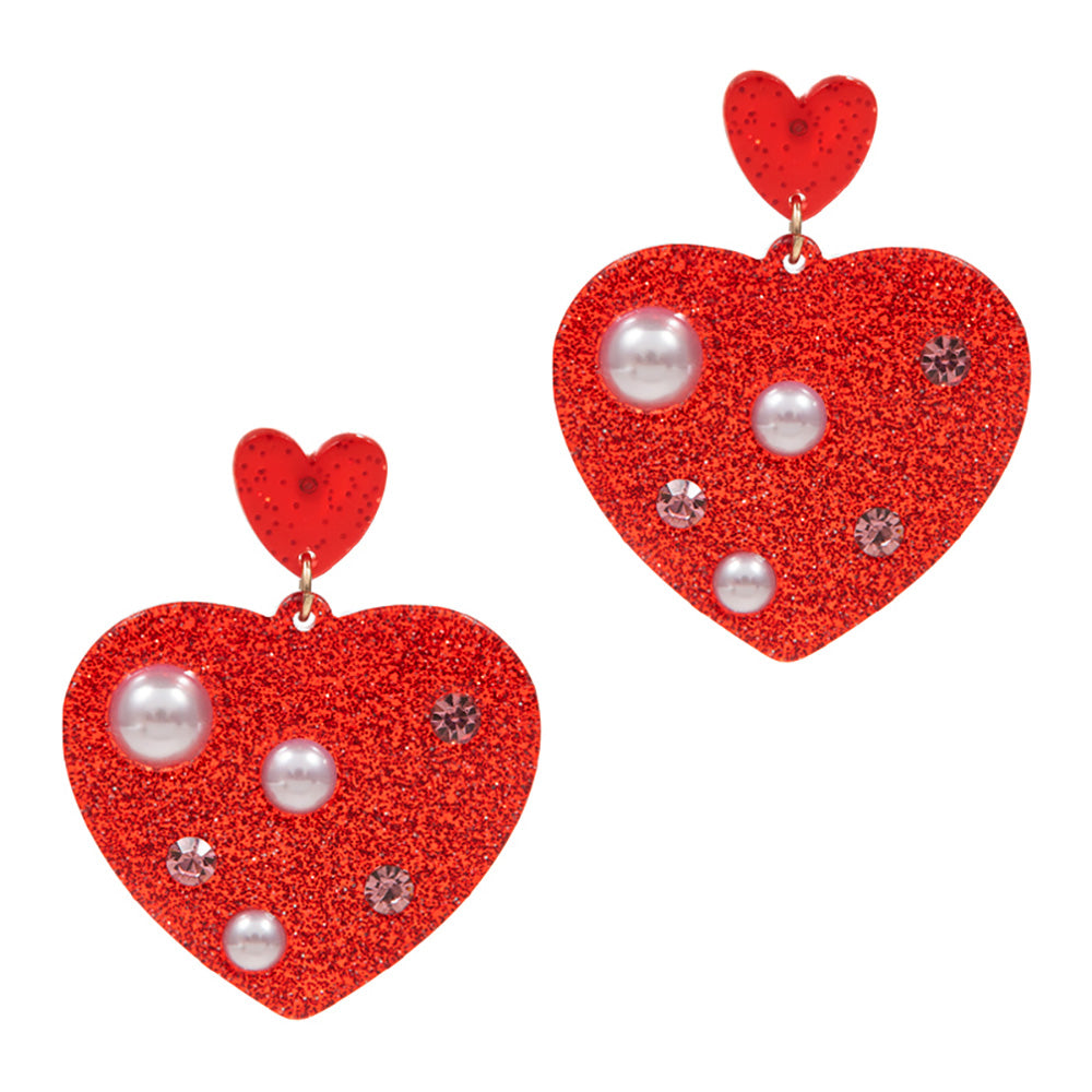 iLLASPARKZ Pearl Embellished Glittered Resin Heart Dangle Earrings