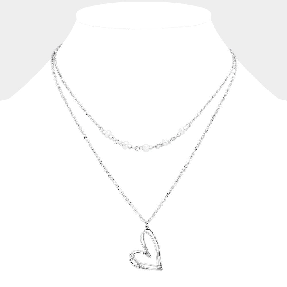 iLLASPARKZ Pearl Pointed Metal Heart Pendant Double Layered Necklace