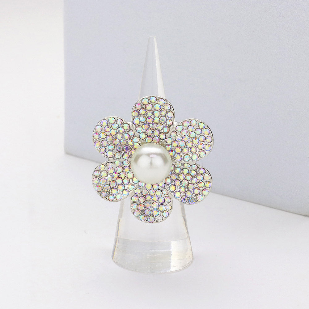 iLLASPARKZ Pearl Pointed Stone Paved Flower Stretch Ring