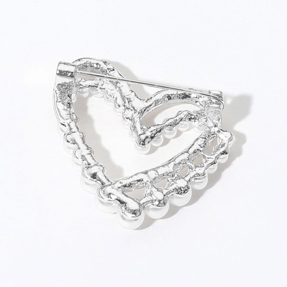 Chic heart-shaped brooch accented with pearls and crystals. Perfect for adding elegance to blazers, dresses, or scarves for any special occasion or everyday charm.