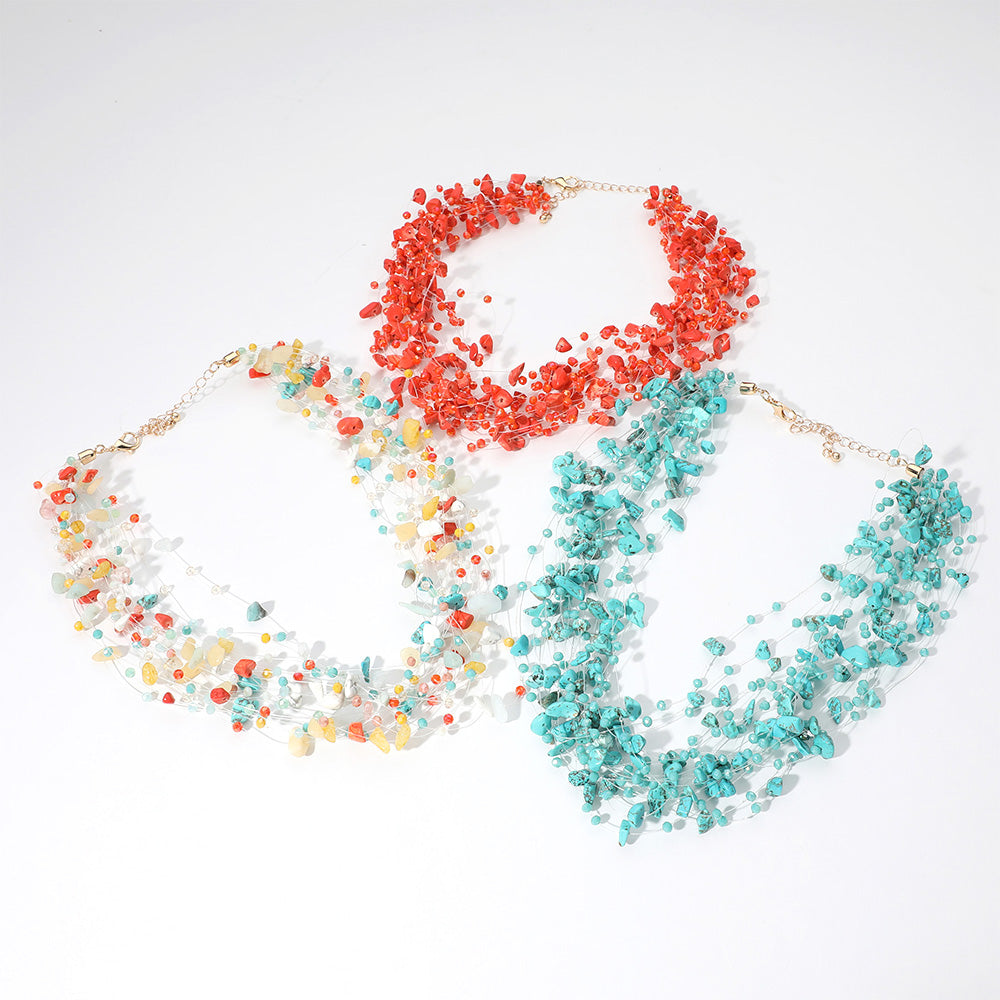 iLLASPARKZ Pebble Faceted Beads Transparent Thread Multi Layered Strand Necklace