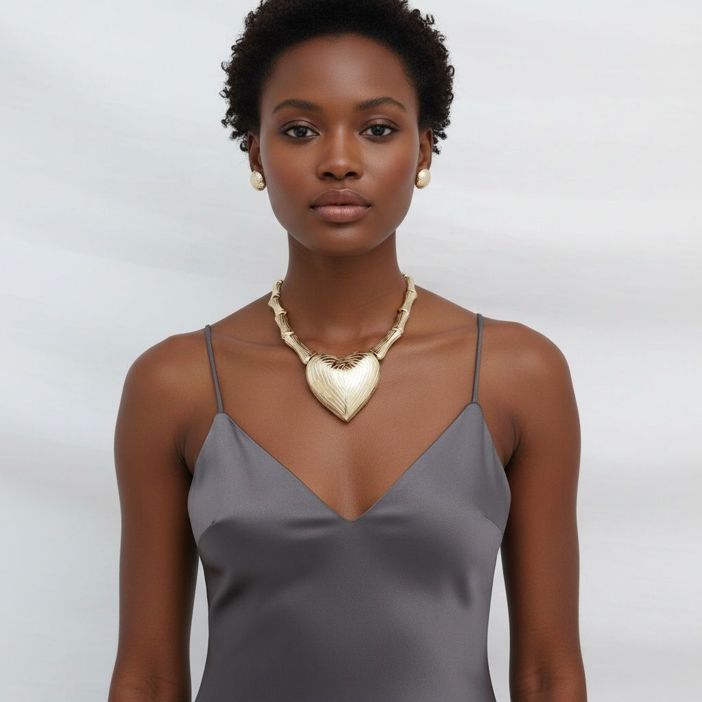 Pendant Gold Bamboo Heart Modern Love Necklace