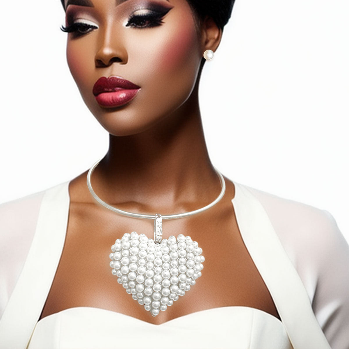 Pendant White Pearl Domed Heart Chunky Necklace