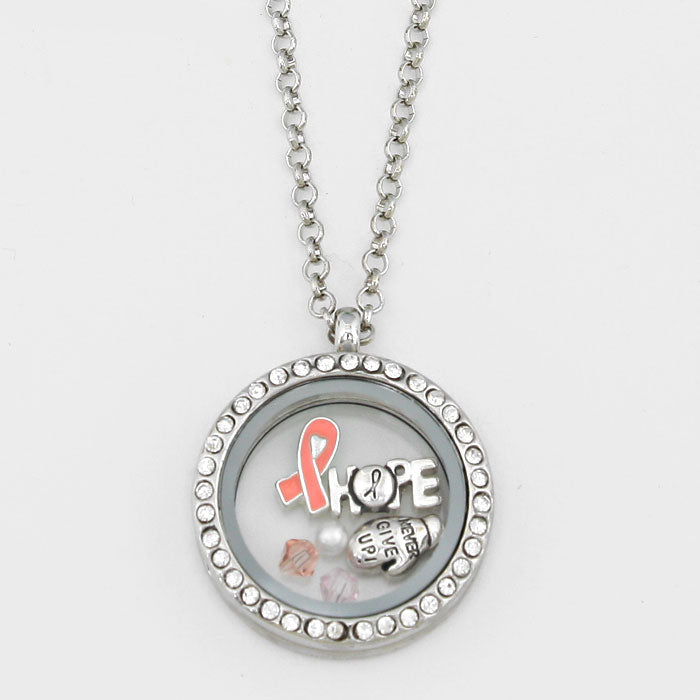 iLLASPARKZ Pink Ribbon Floating Locket Pendant Necklace