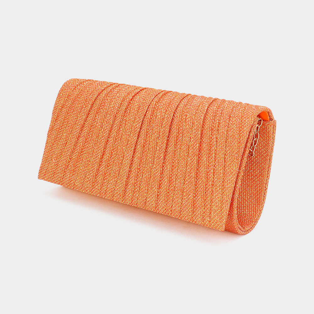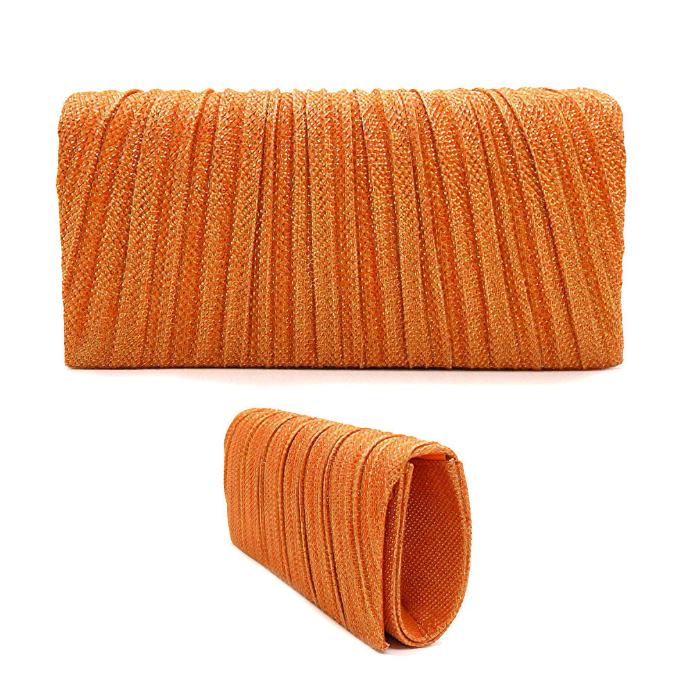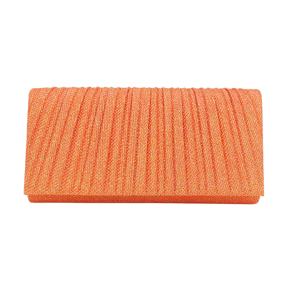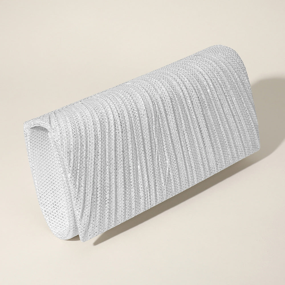 A modern pleated evening clutch designed to complement any elegant ensemble. With a sleek silhouette and practical interior, it’s perfect for special occasions, weddings, or parties, offering a blend of style and convenience for your essentials.