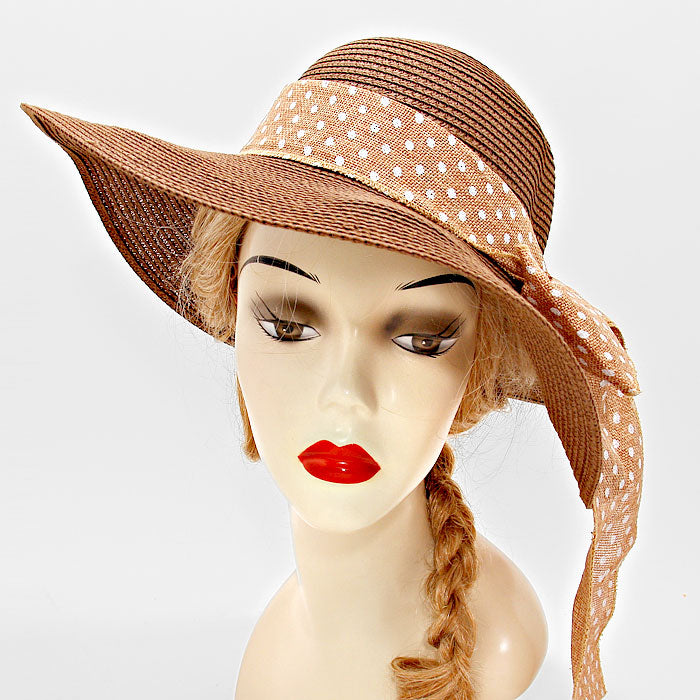 iLLASPARKZ Polka Dot Ribbon Bow Straw Floppy Hat