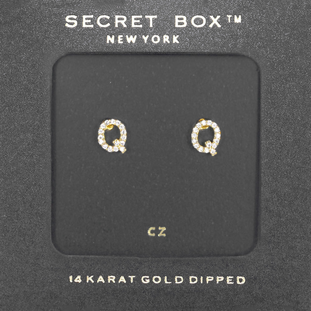 iLLASPARKZ -Q- Secret Box _ 14K Gold Dipped CZ Monogram Stud Earrings