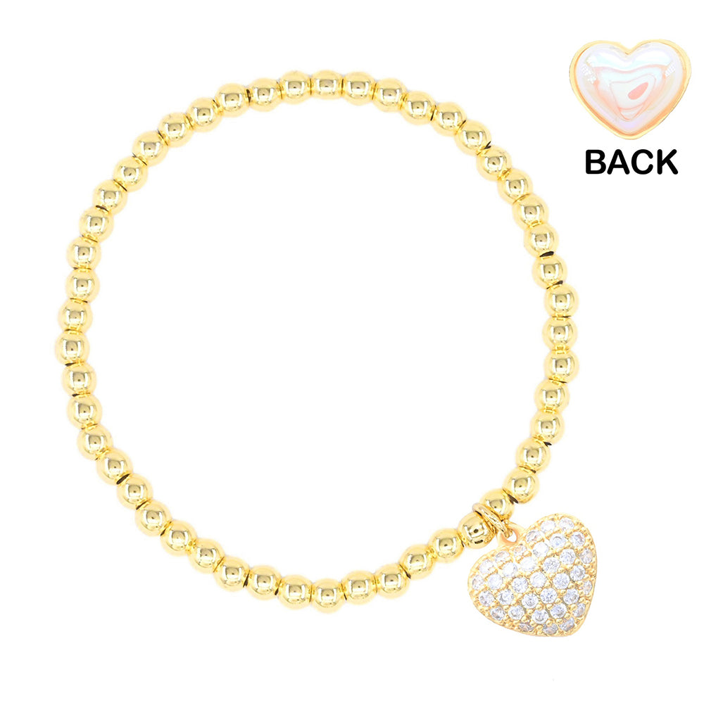 iLLASPARKZ Reversible Stainless Steel Heart Charm Beaded Stretch Bracelet