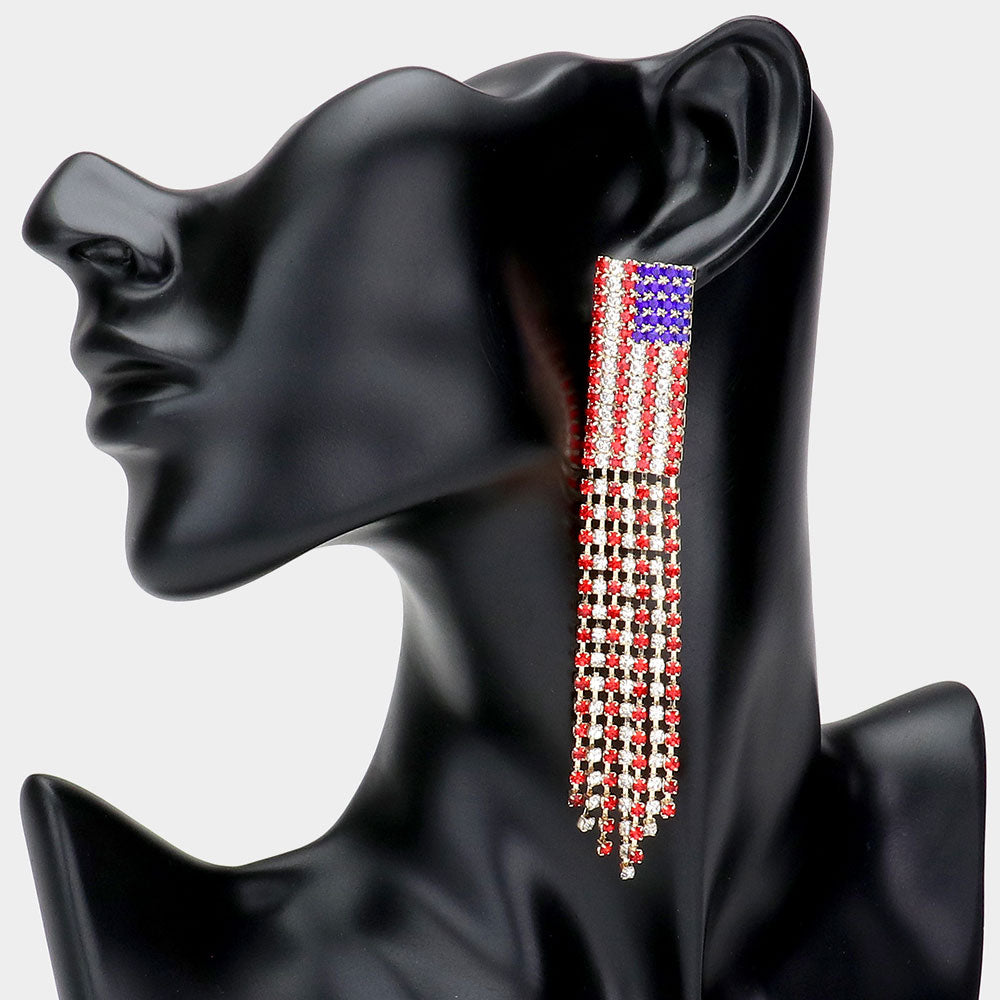 iLLASPARKZ Rhinestone American USA Flag Fringe Dangle Earrings