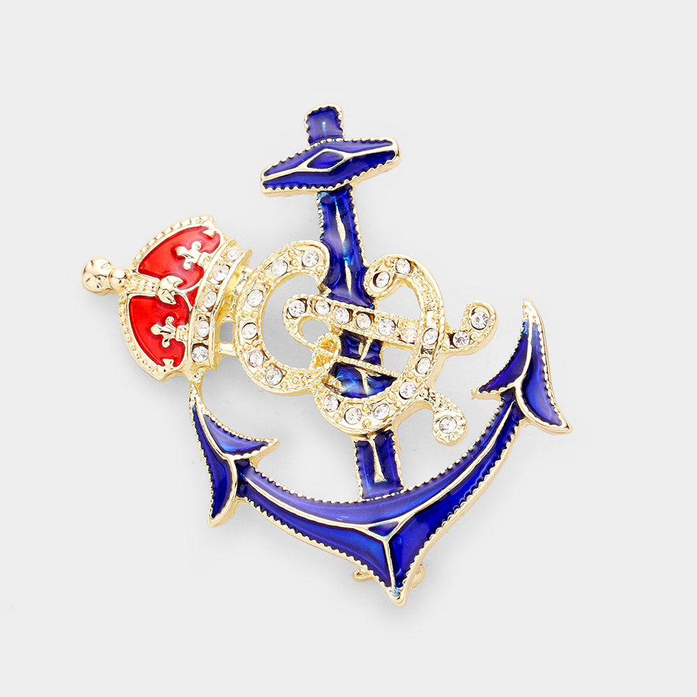 iLLASPARKZ Rhinestone Detail Crown Anchor Pin Brooch