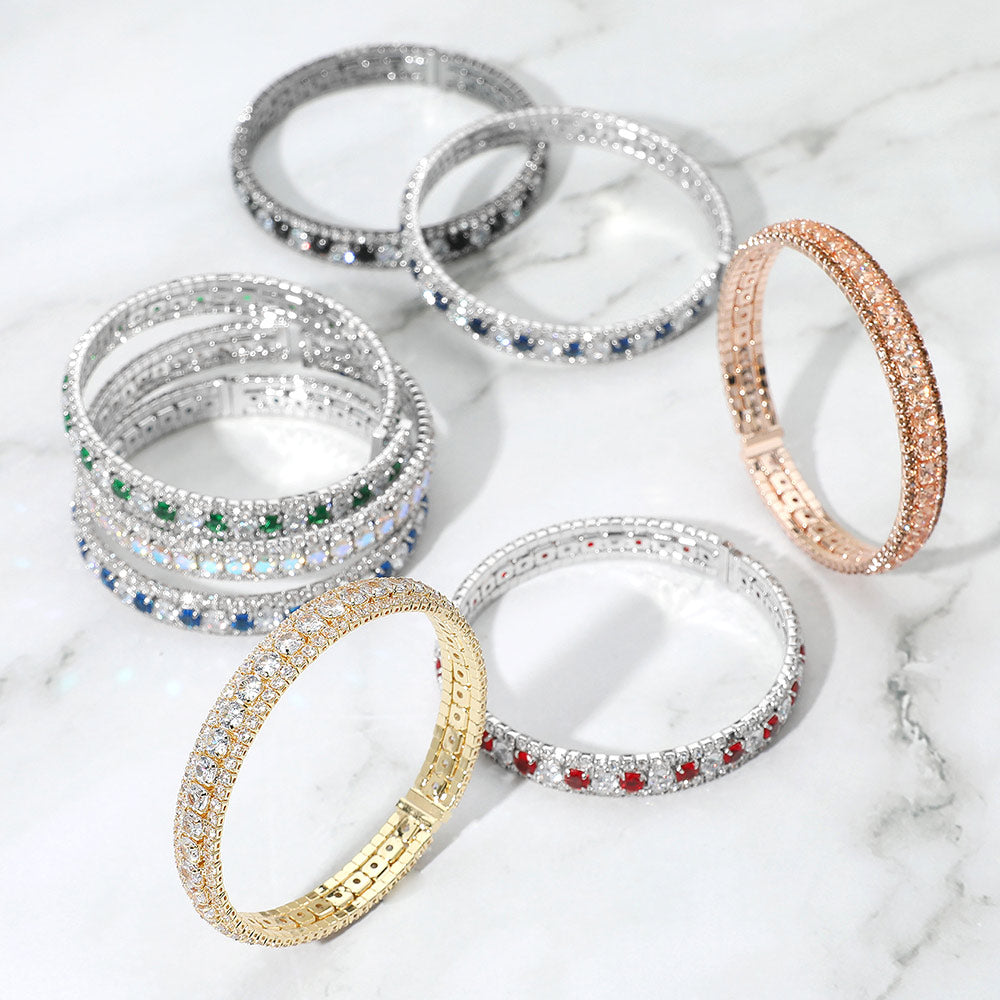 Dazzling adjustable bangle bracelet with two rows of sparkling crystals. Ideal for adding a refined touch to evening wear or elevating everyday looks with timeless shimmer.
