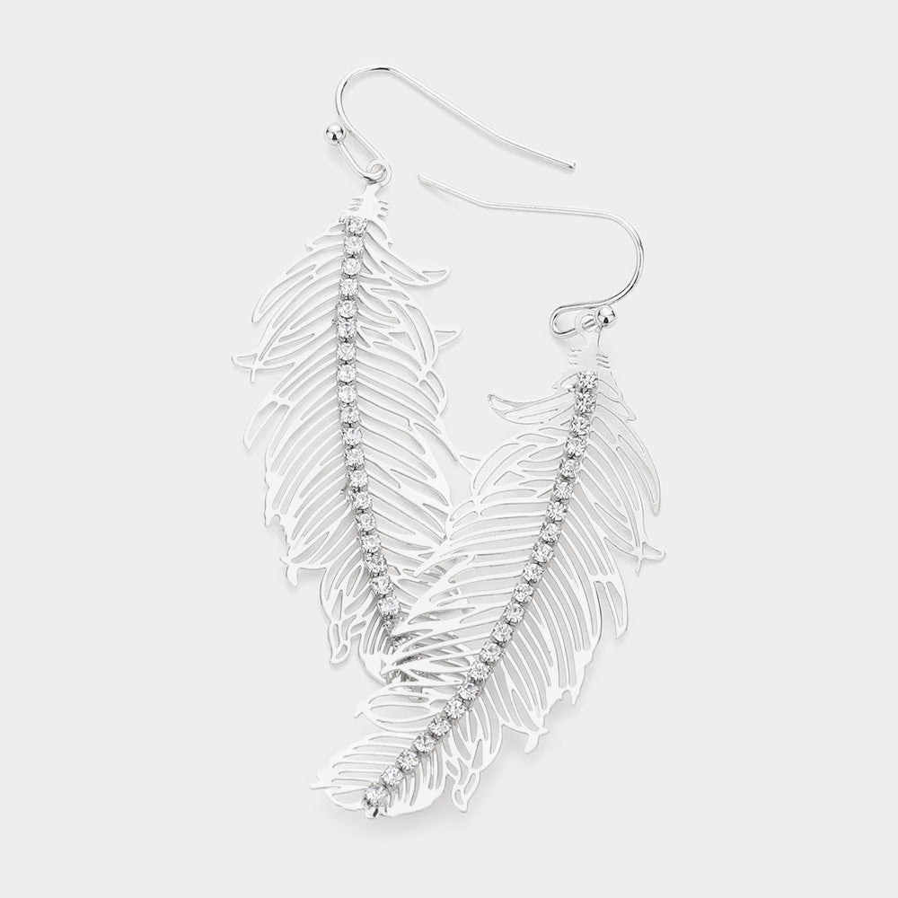 iLLASPARKZ Rhinestone Embellished Cut Out Metal Leaf Dangle Earrings