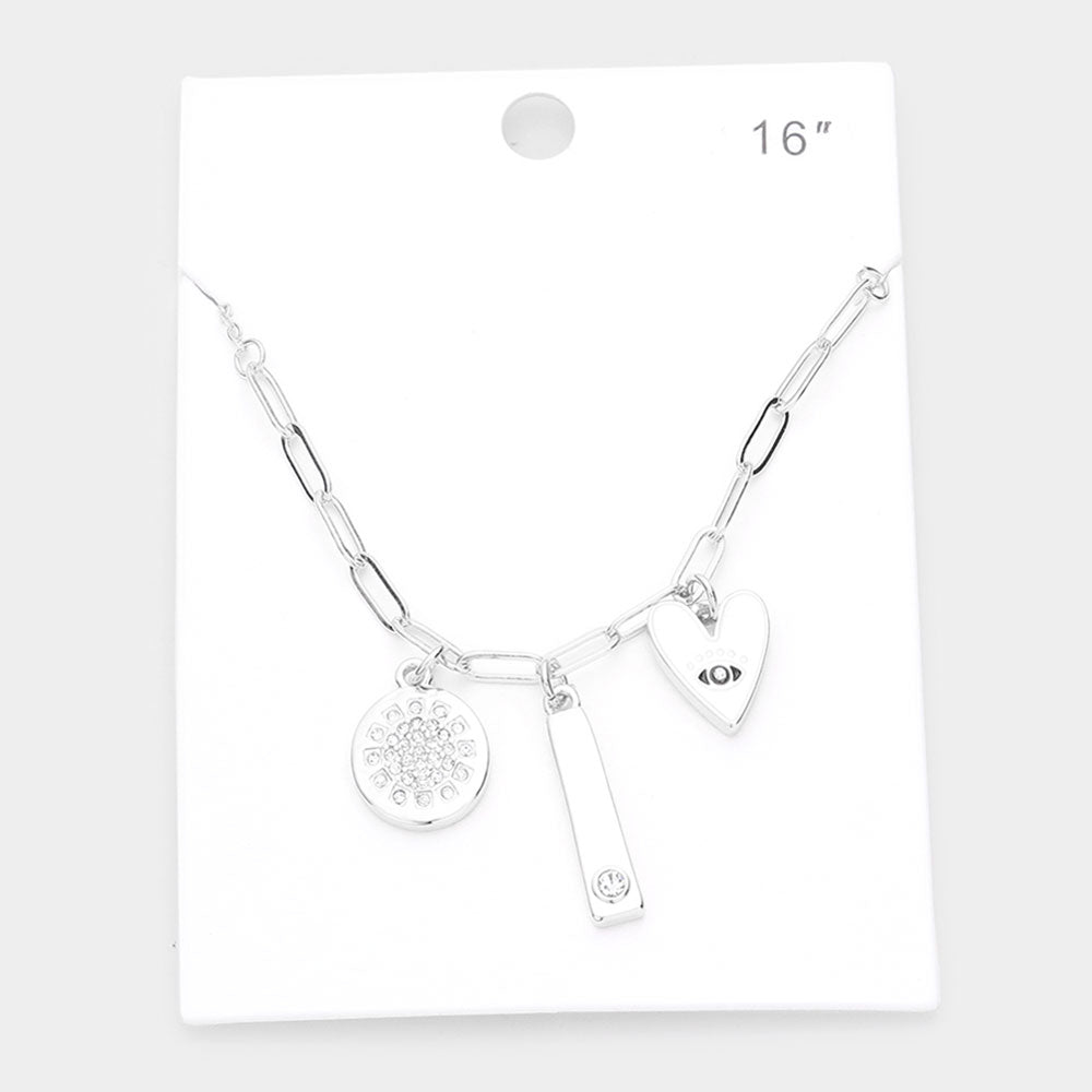 iLLASPARKZ Rhinestone Embellished Metal Round Rectangle Evil Eye Accented Heart Pendant Necklace