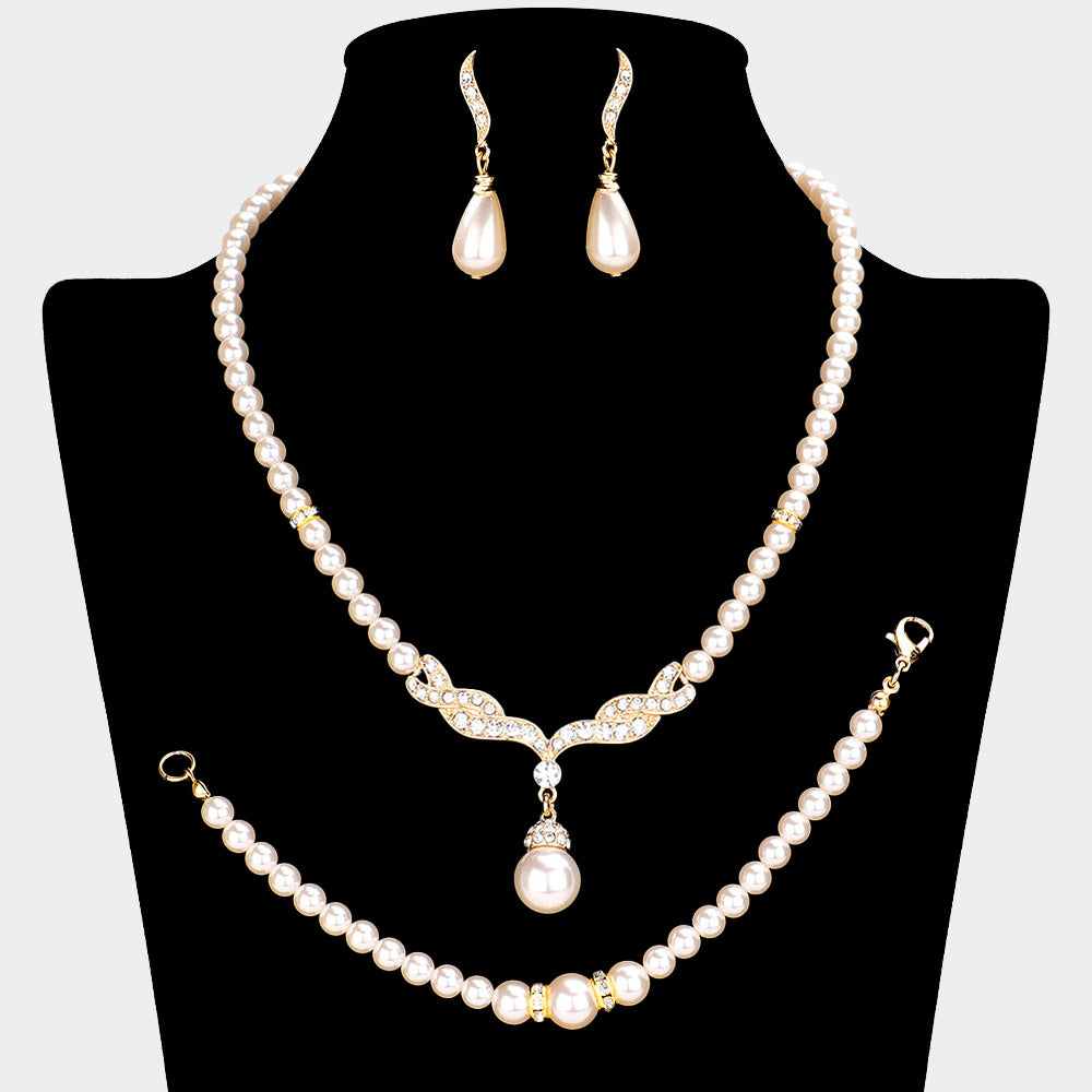 iLLASPARKZ Rhinestone Embellished Pearl Necklace Jewelry Set