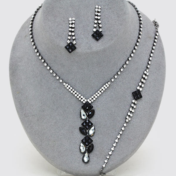 iLLASPARKZ Rhinestone Leaf Fringe Necklace Set