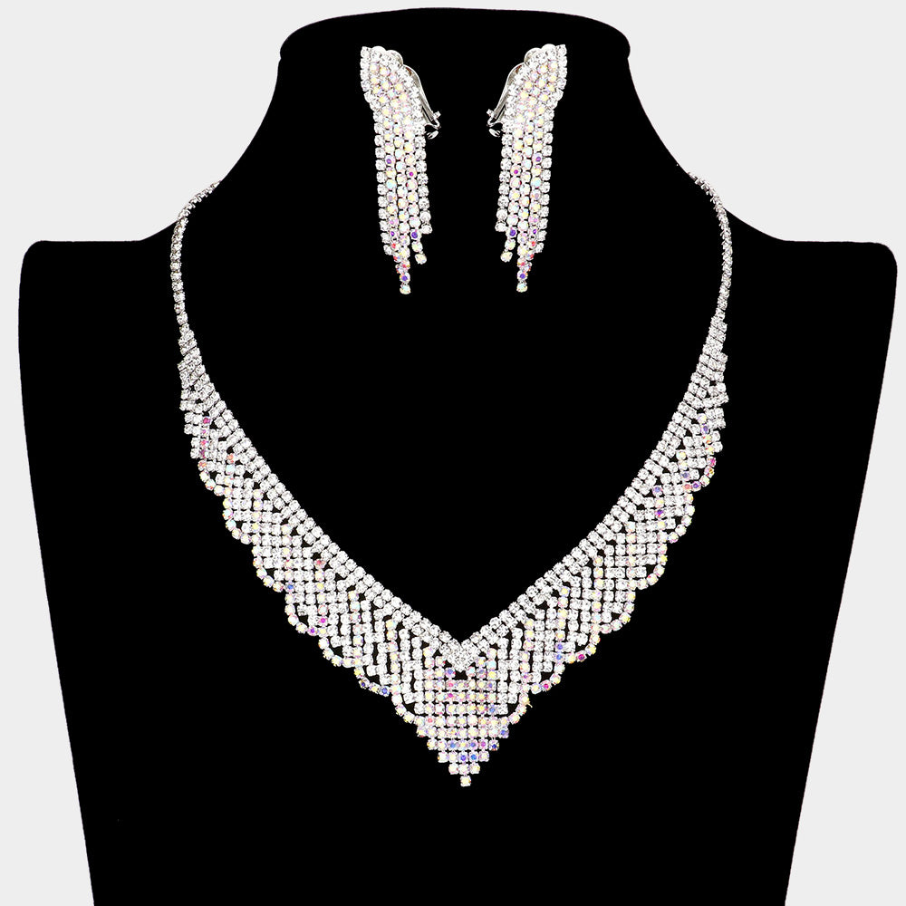 iLLASPARKZ Rhinestone Pave Necklace Clip on Earring Set