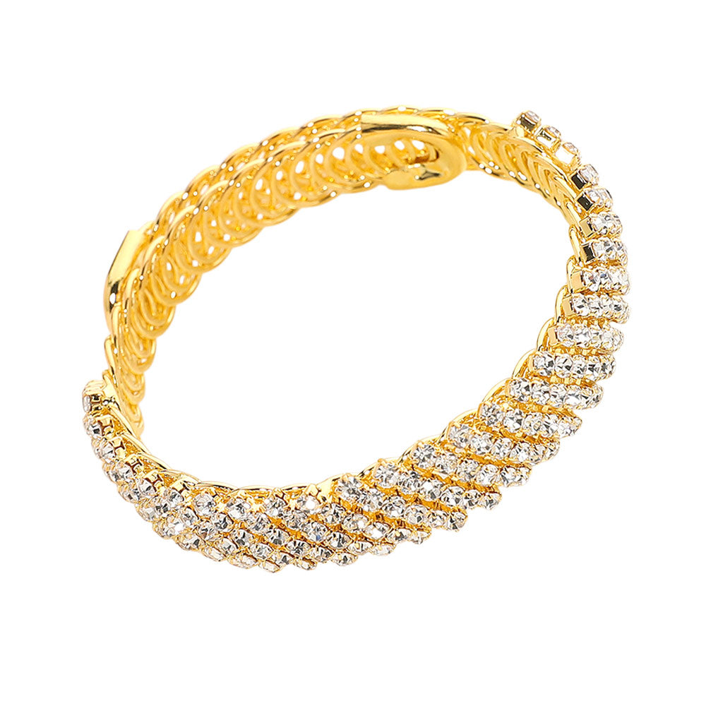 Elevate your style with this sparkling crystal coil bracelet, designed with shimmering stones in a gold tone adjustable wrap bangle. Perfect for weddings, parties, or special occasions, this bracelet adds glamour and sophistication to any outfit while ensuring a comfortable fit.