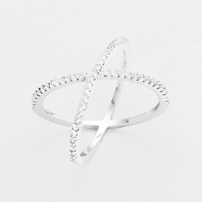 iLLASPARKZ Rhodium Plated Cubic Zirconia Crisscross Ring