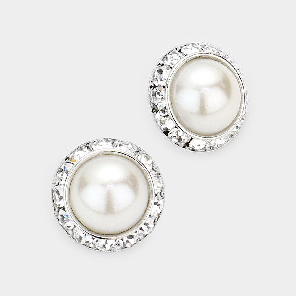 iLLASPARKZ Rivoli Cut Genuine Crystal Pearl Round Stud Earrings