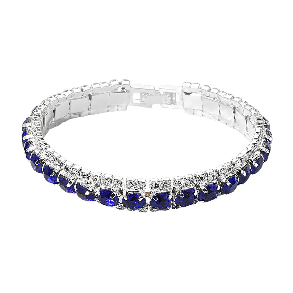 This elegant double row bracelet features iridescent stones framed by shimmering accents for a radiant, eye-catching look. With a secure clasp and refined design, it’s perfect for adding a touch of glamour to evening wear or elevating everyday outfits.