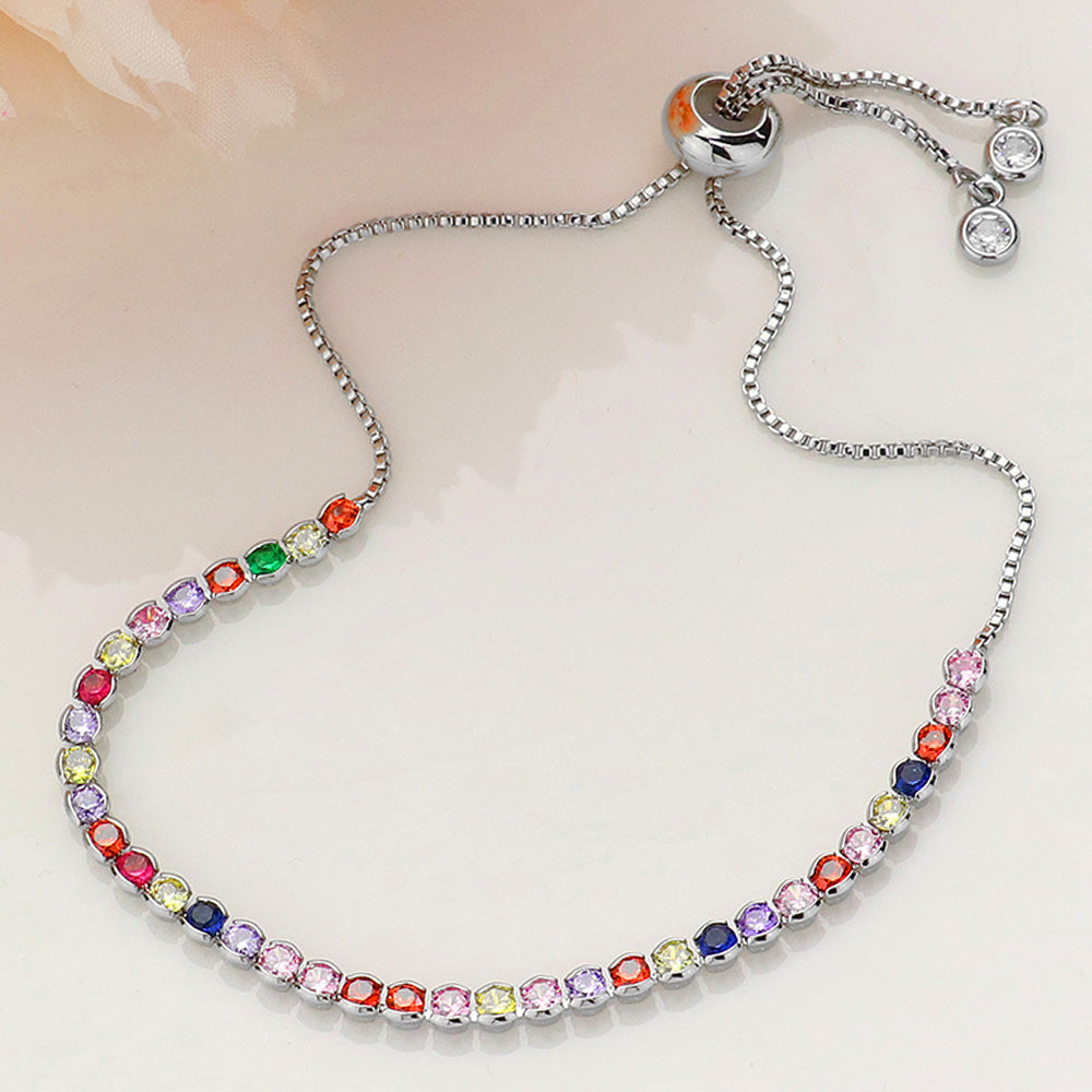 Elegant adjustable chain bracelet featuring a sleek row of sparkling crystal accents. Designed with a secure sliding clasp for a perfect fit, this piece blends classic shine with modern ease. Ideal for stacking or wearing solo for a refined, understated finish.