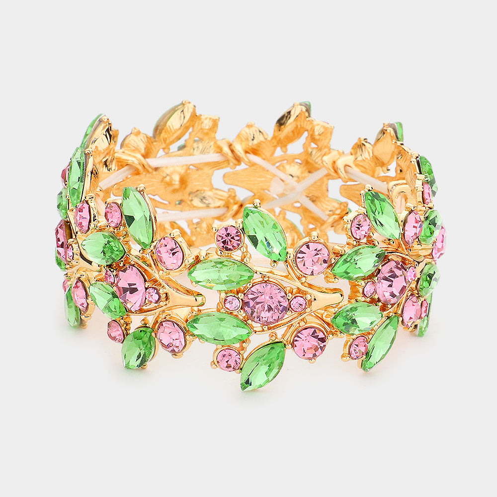 iLLASPARKZ Round Marquise Stone Cluster Stretch Evening Bracelet