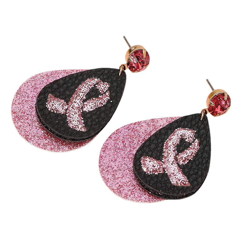 Layered glitter drop earrings featuring an awareness ribbon motif. Stylish and impactful, perfect for making a statement while supporting a meaningful cause with shimmer and charm.