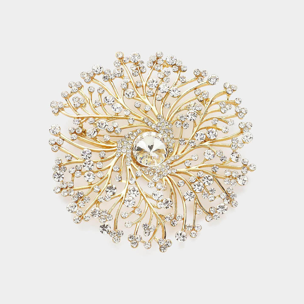 iLLASPARKZ Round Stone Centered Rhinestone Embellished Branch Flower Pin Brooch