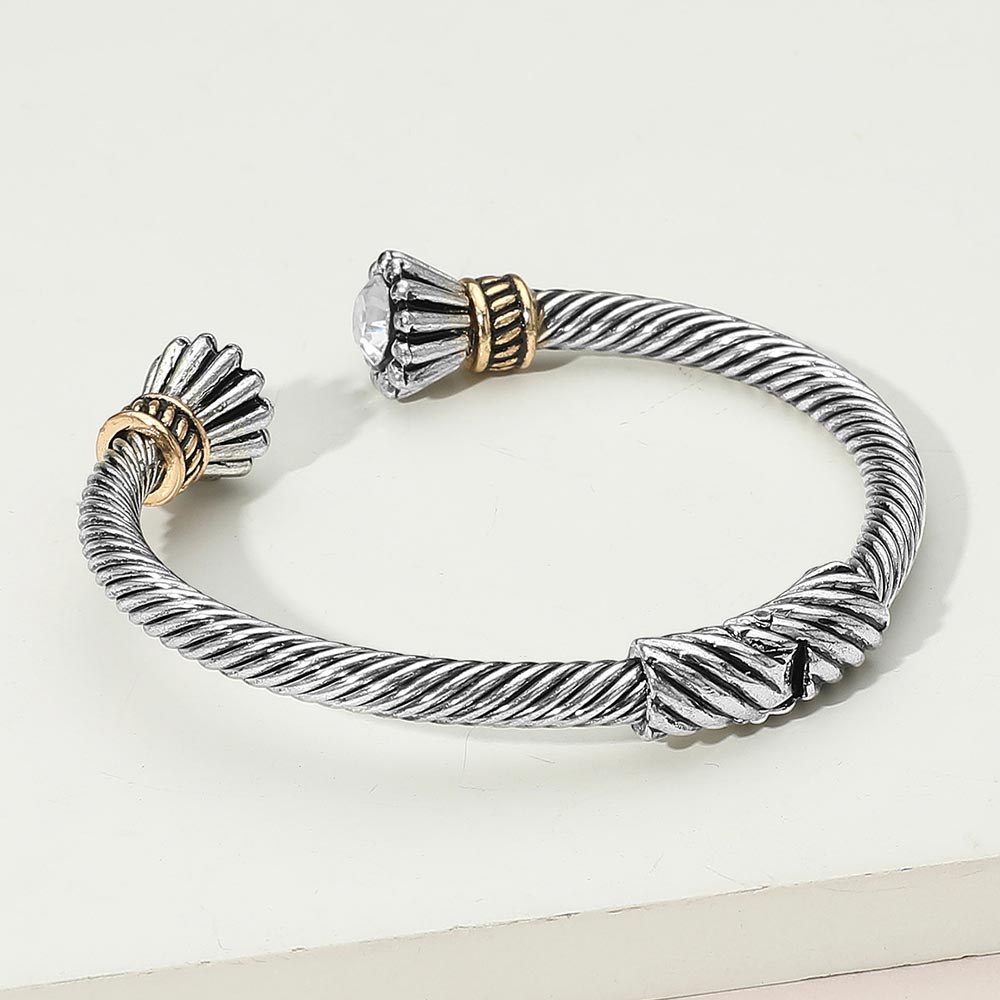 iLLASPARKZ Round Stone Tip Antique Metal Hinged Cuff Bracelet