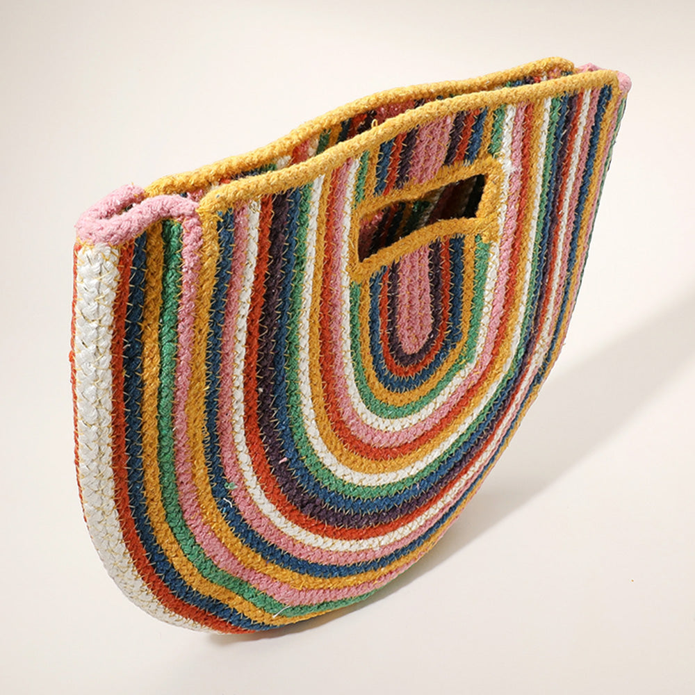 iLLASPARKZ Round Stripped Knitted Woven Tote Bag