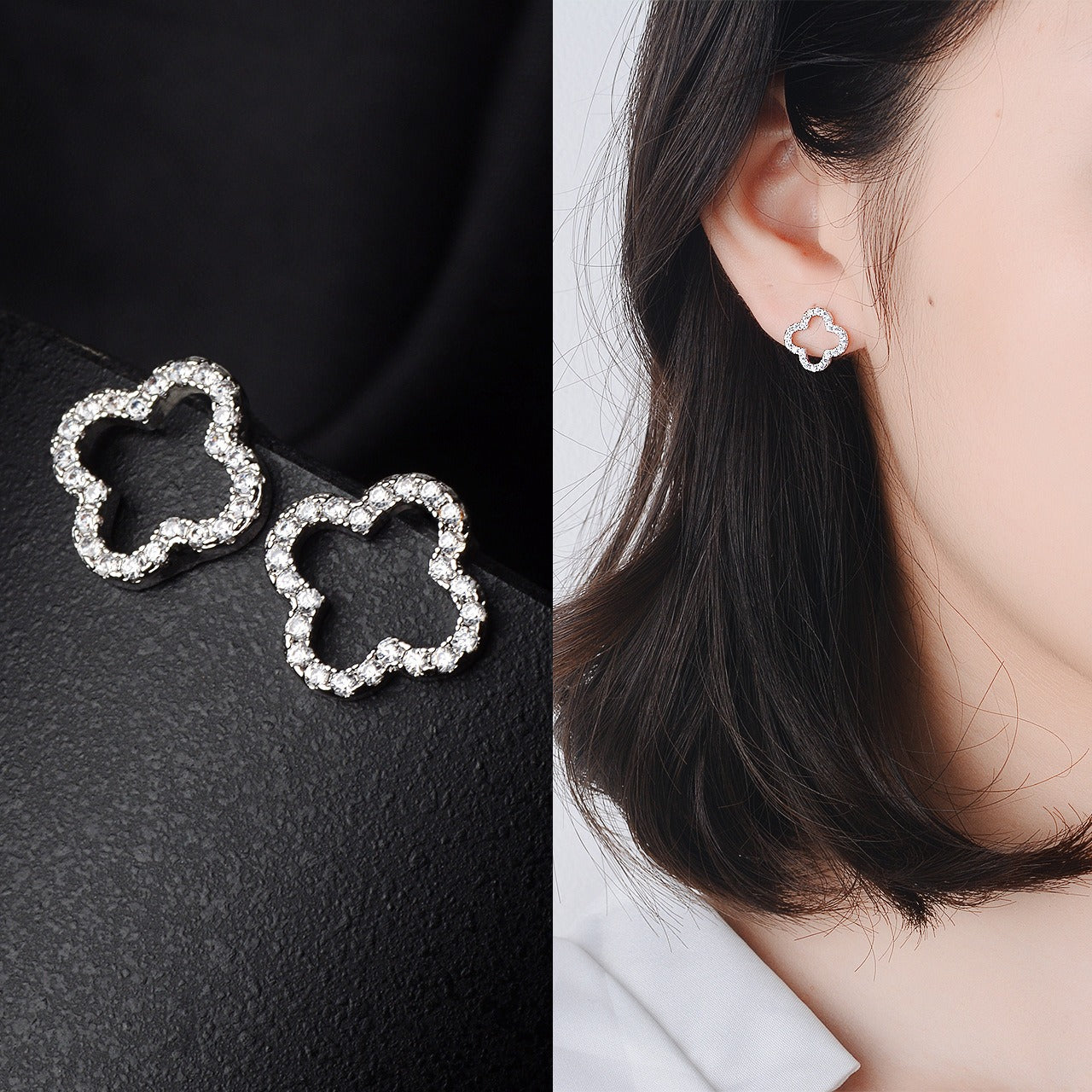 S925 Sterling Silver Forest-style Four-leaf Clover Diamond Earrings