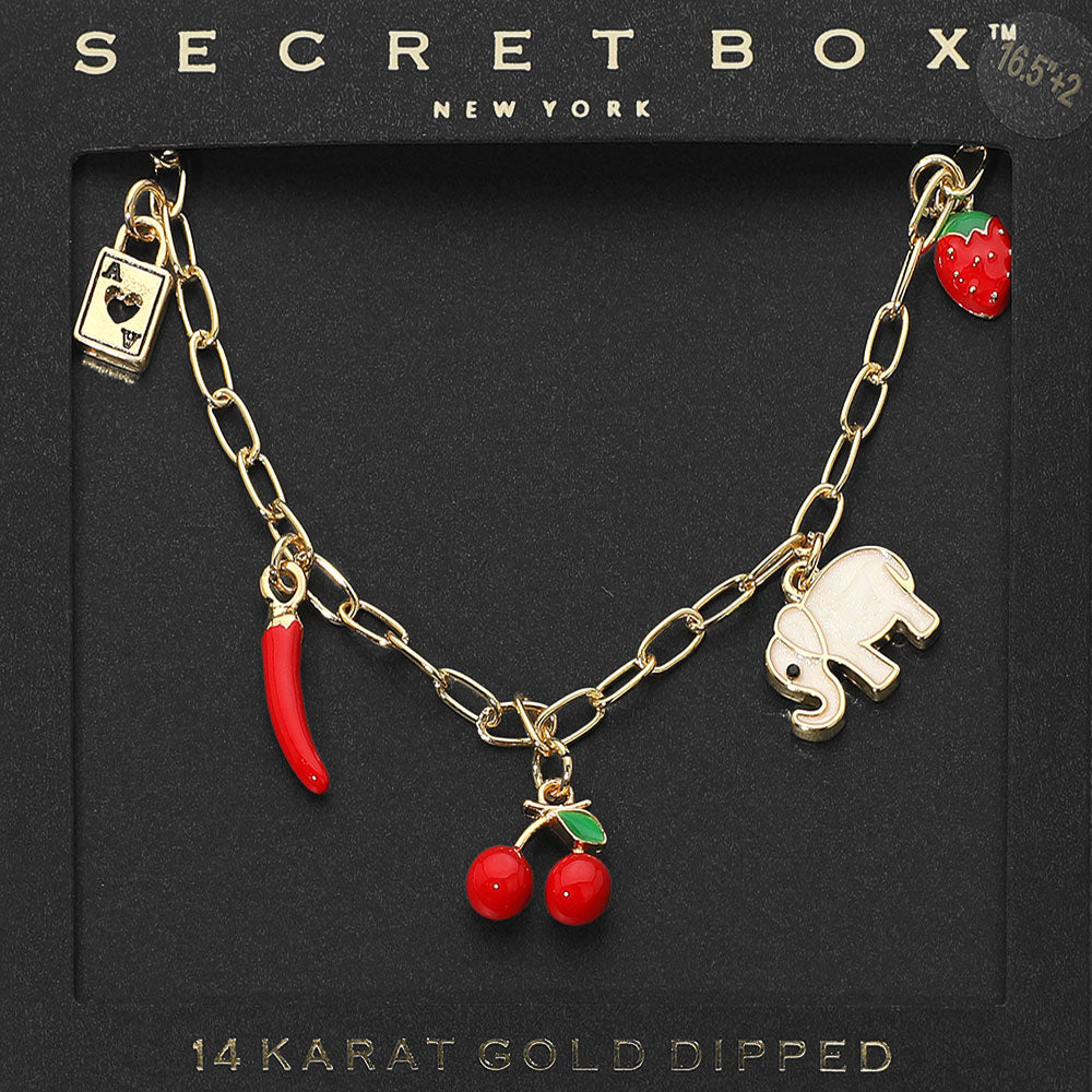 iLLASPARKZ SECET BOX_14K Gold Dipped Cherry Elephant Chili Strawberry Lock Charm Station Paperclip Chain Necklace