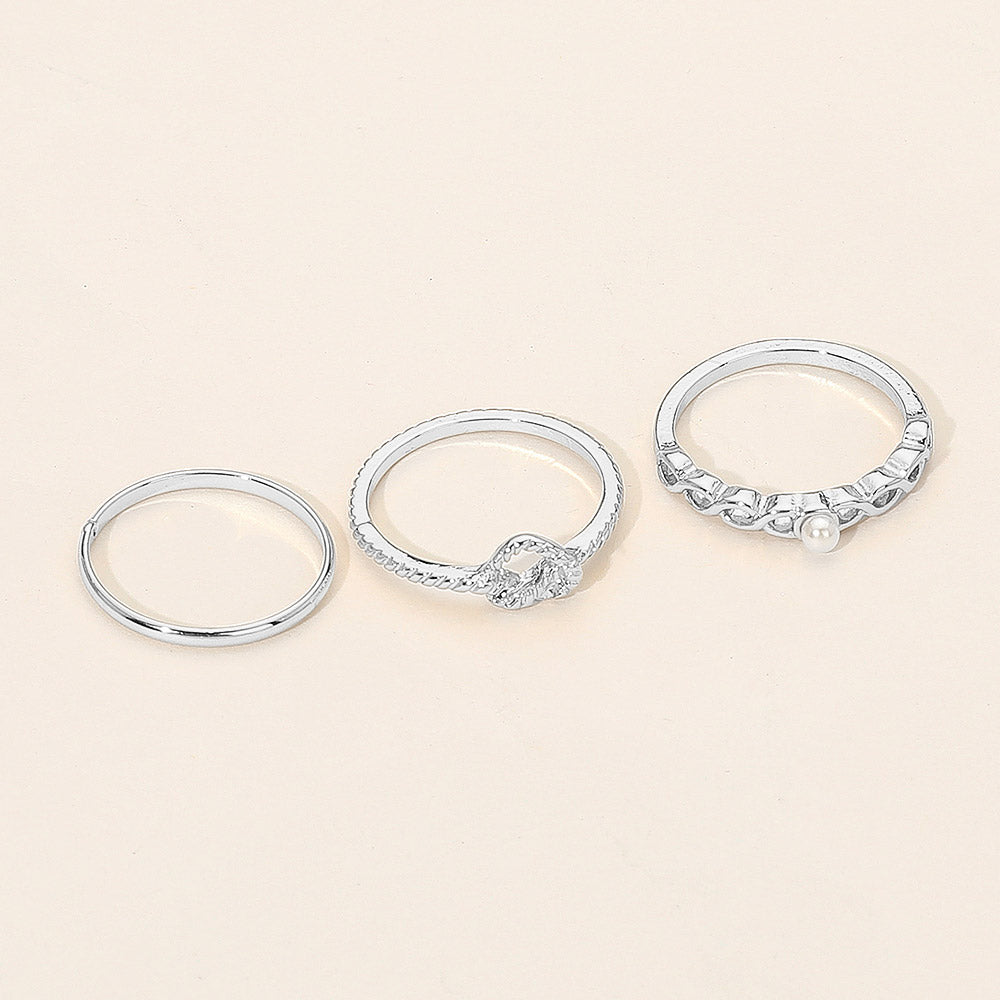 iLLASPARKZ SECET BOX_3PCS Genuine Silver Dipped Heart Pearl Accent Stackable Fashion Ring Set