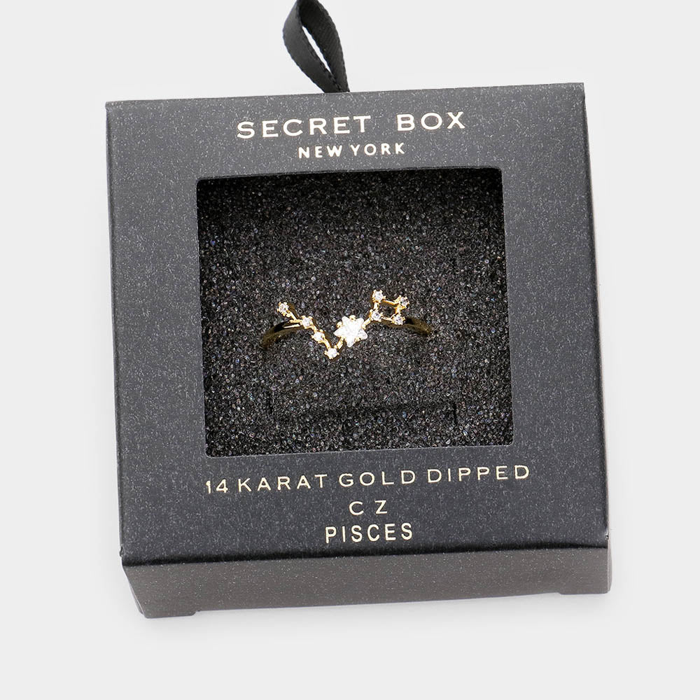 iLLASPARKZ Secret Box _ 14k Gold Dipped CZ Zodiac Sign Pisces Ring