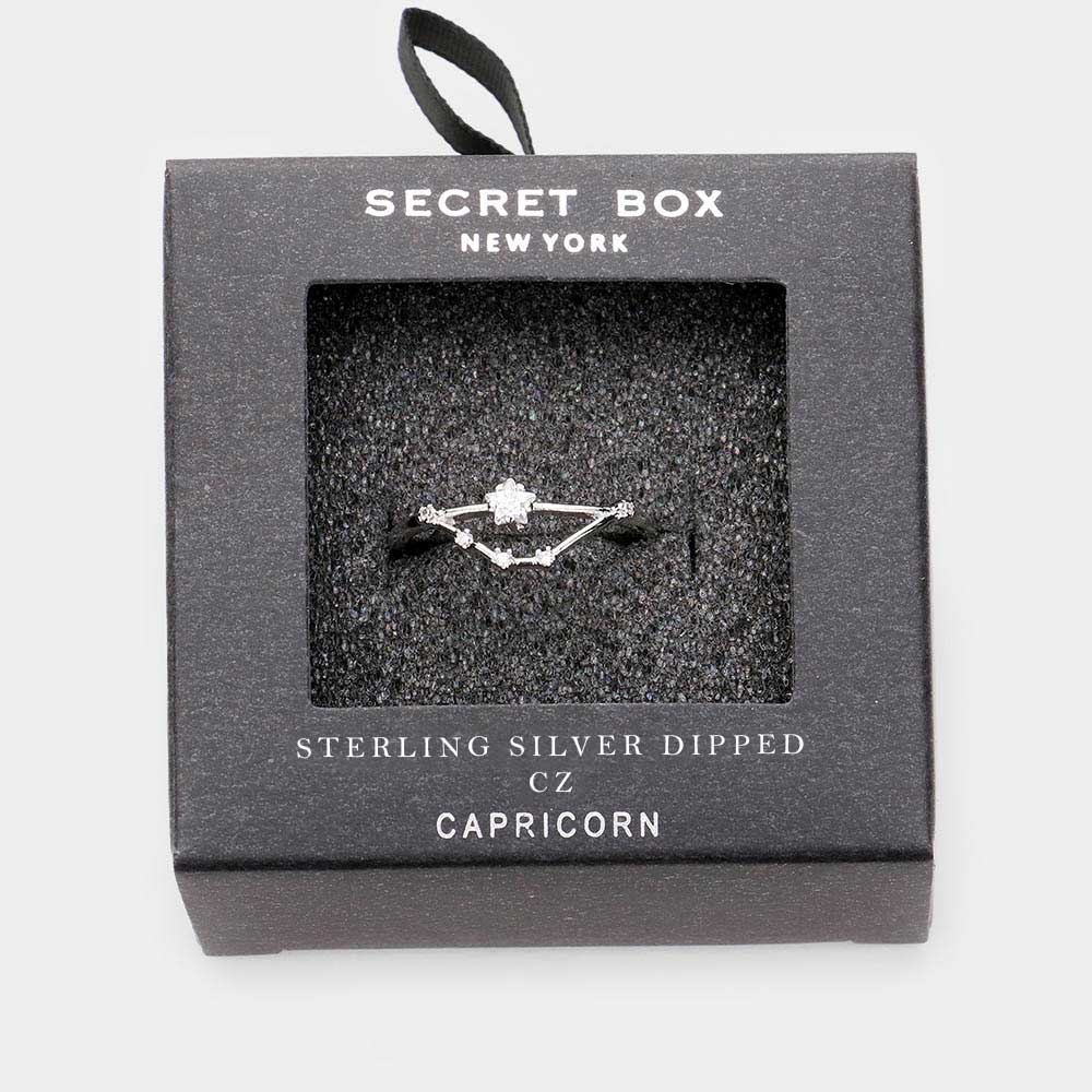 iLLASPARKZ Secret Box _ Sterling Silver Dipped CZ Zodiac Sign Capricorn Sign Ring